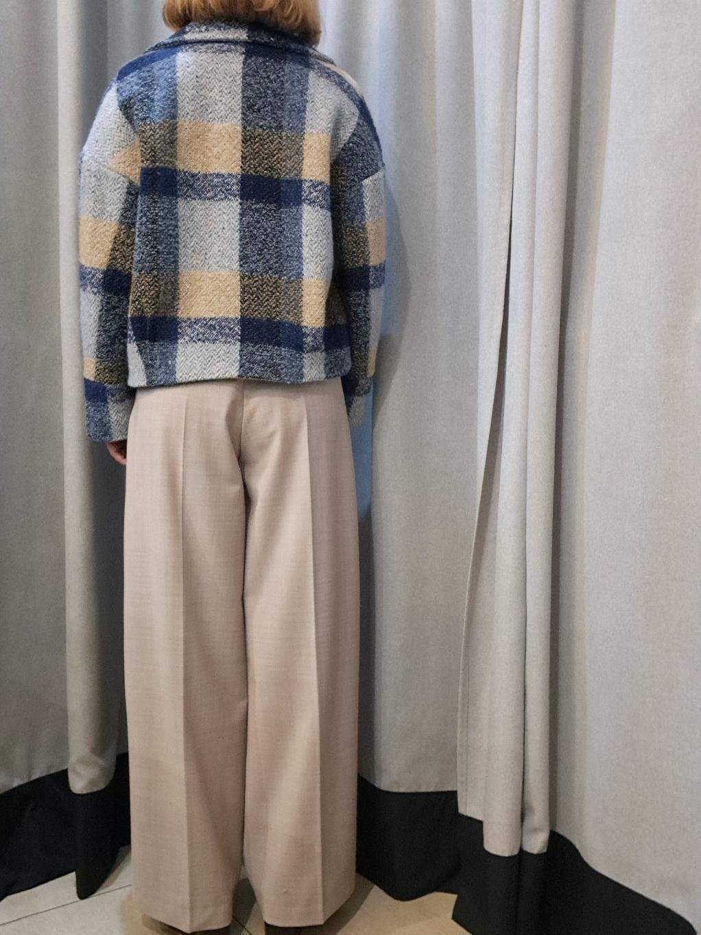 Piękna kurtka w dużą kratę ,wykonana z dziewiczej wełny. Skład to 86% wełny dziewiczej, 5% alpaka,5% moher, 4% poliamid.